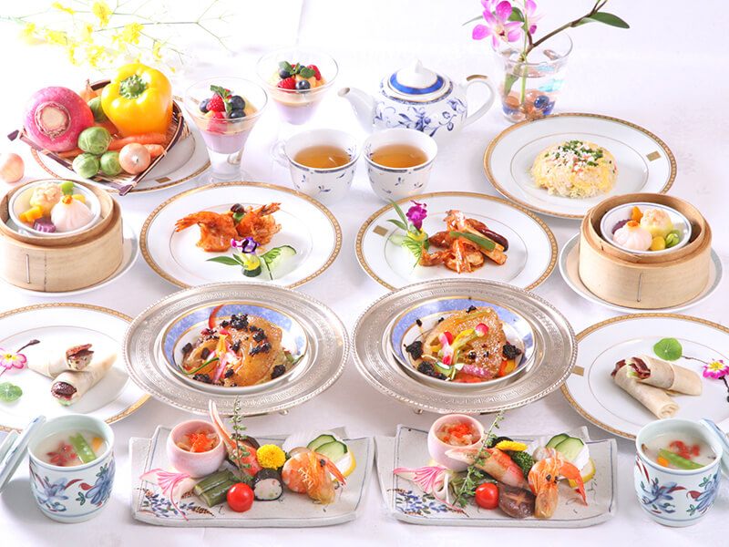 • こちらのコースのお料理は全て大皿提供でございます。中国料理の醍醐味である大皿料理をお客様でお取り分けいただきながらお召し上がりいただくコース料理です。大皿提供料理の個別盛りやお取り分けのサービスはございません。